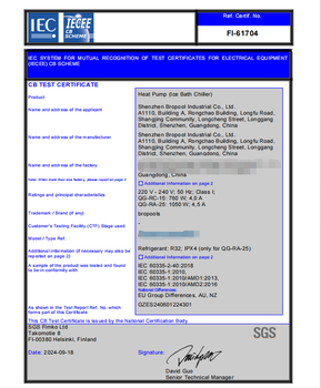 The chiller cools the water fast and runs quietly. Wi-Fi control is easy to use and stable, which makes daily operation convenient. The stainless steel feels solid, and so far it has been working without any problems